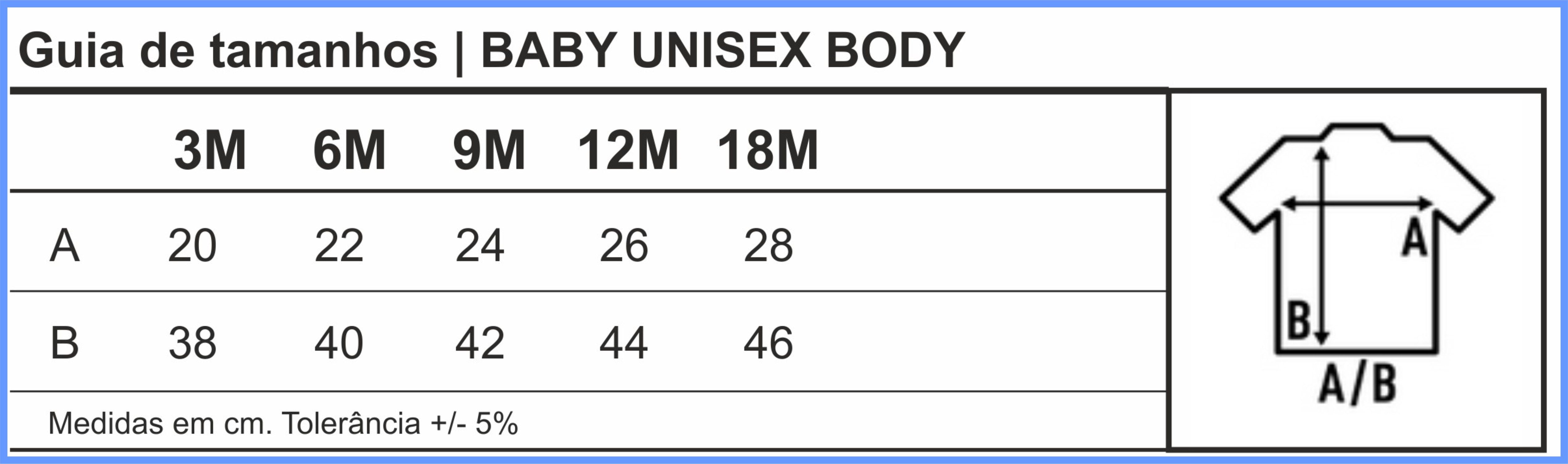 • Body: tamanhos de bebé (consoante disponibilidade em stock)